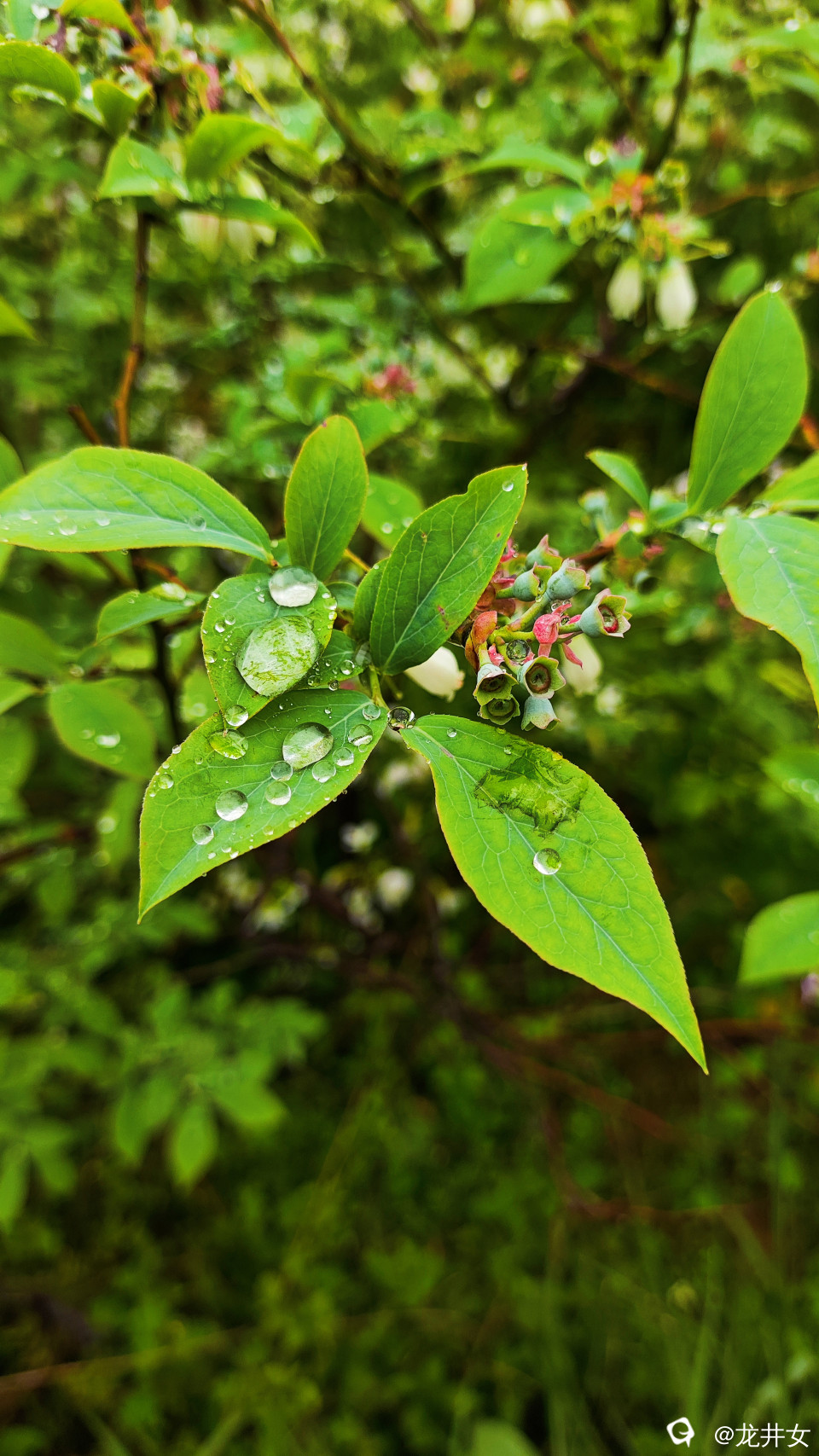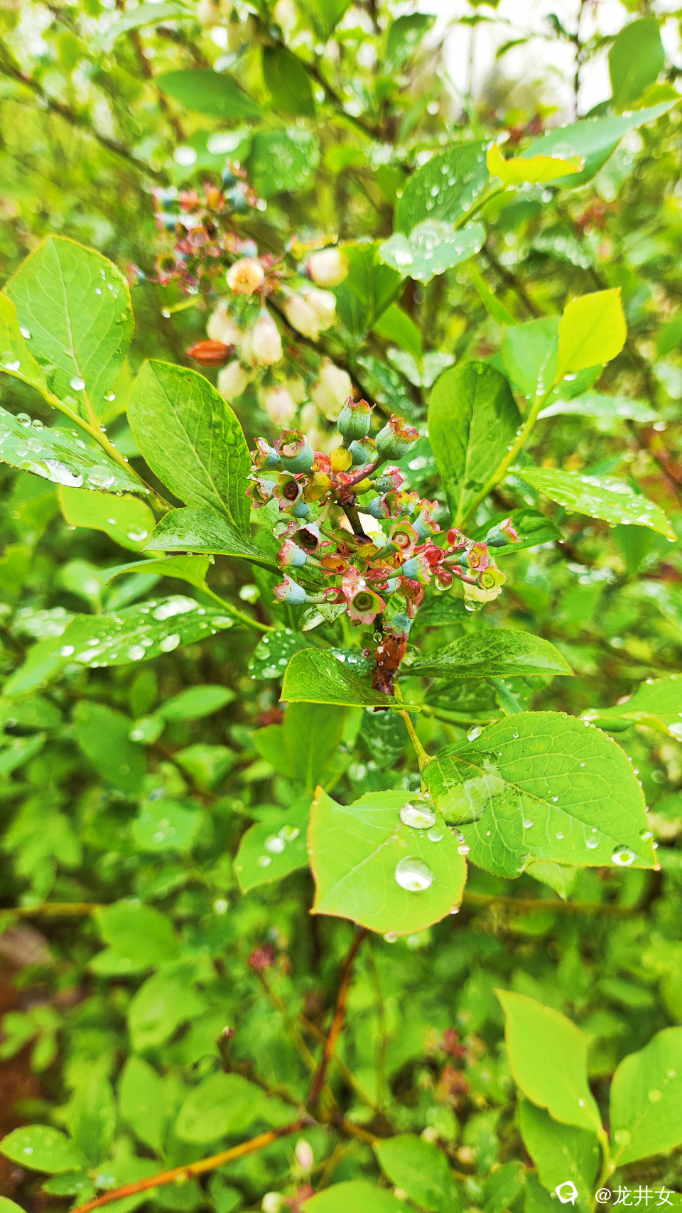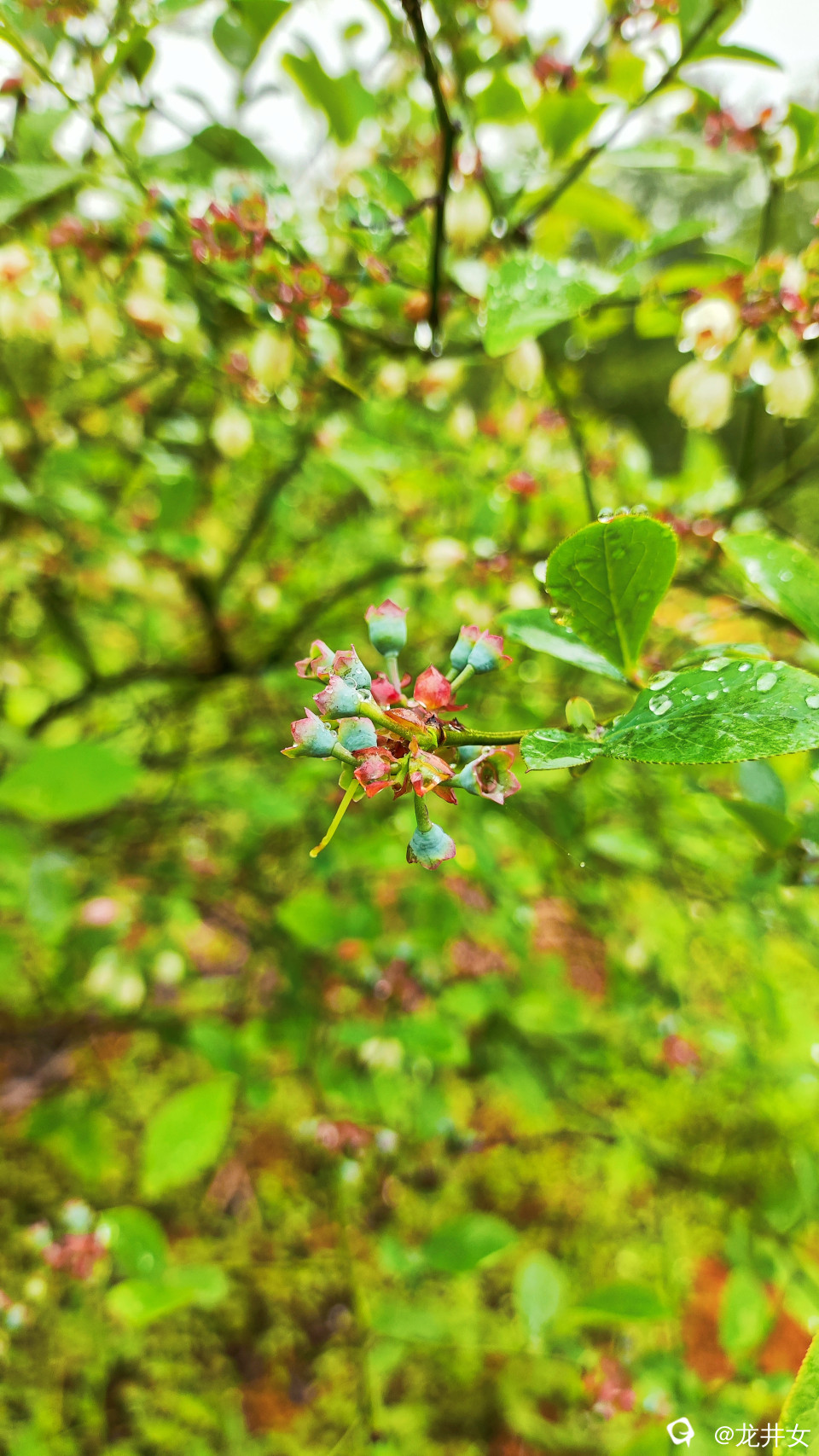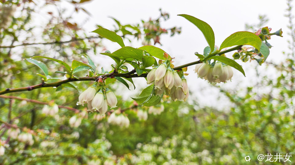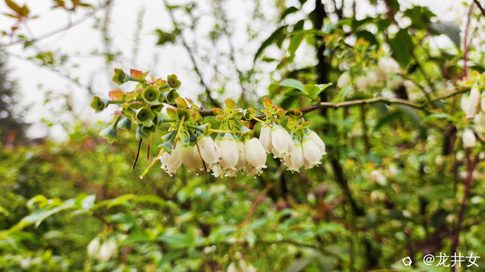 谷雨里,蓝莓娇艳嫩绿,开着花,结着果,在春天里写着情诗,裹着风裹着雨裹在一字一句里。