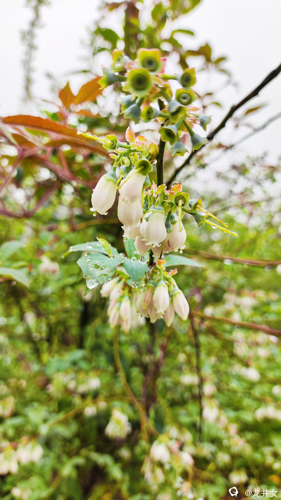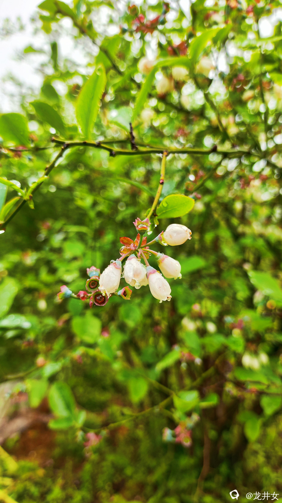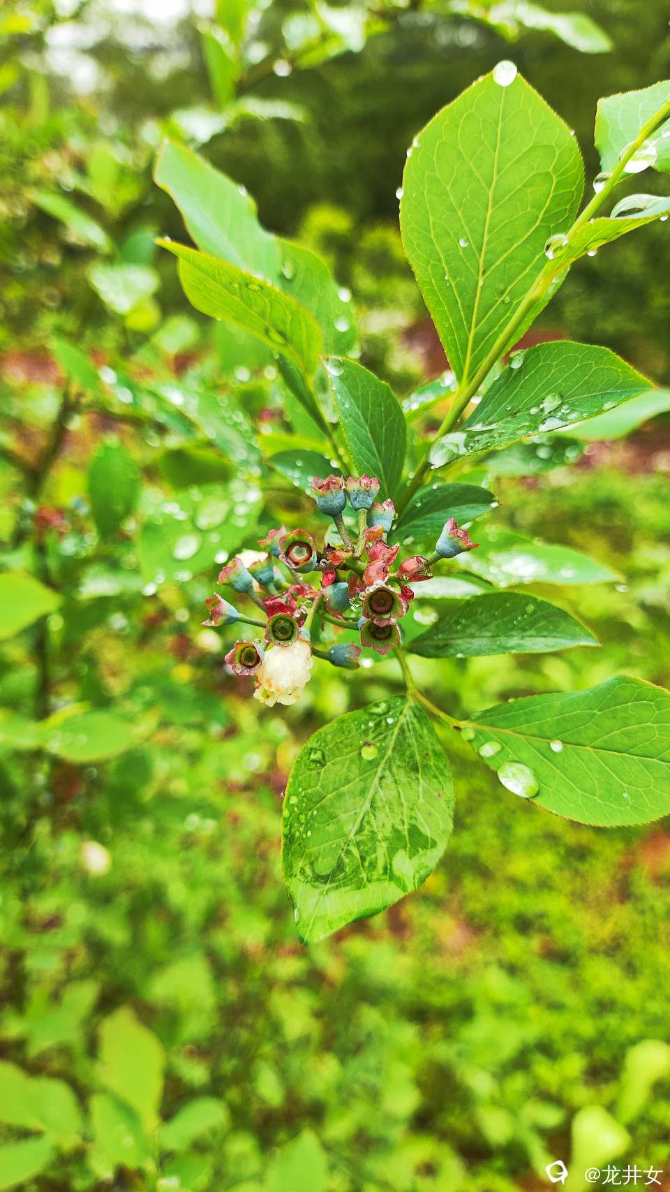 谷雨里,蓝莓娇艳嫩绿,开着花,结着果,在春天里写着情诗,裹着风裹着雨裹在一字一句里。
